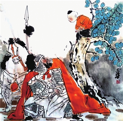 无巧不成书。工夫不大,项羽领追兵赶了上来。他们也是一路奔跑,人困马乏,见大槐树下荫凉正好,便坐下歇脚。树上小孩看见又有人来,心想又可得银钱,何不再撒尿一泼?于是,照办。这西楚霸王何等了得,大喊一声,把小孩子抻下来,手提双腿一叫劲儿,撕成两半。可怜一个小孩命归西去,这事表现了他心太狠。对老百姓心狠,鱼儿没了水。