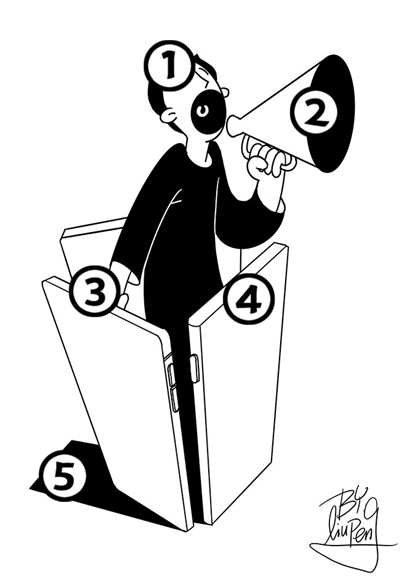 (左边两幅漫画共有5处不同,快来找找看吧!)画/刘鹏