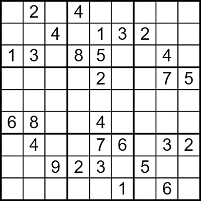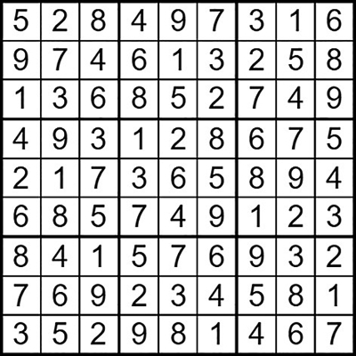 在每个小格子里填入1-9中的数字,使得每个数字在“九宫阵”的每行、每列、每个宫格中均只出现一次。(答案→)