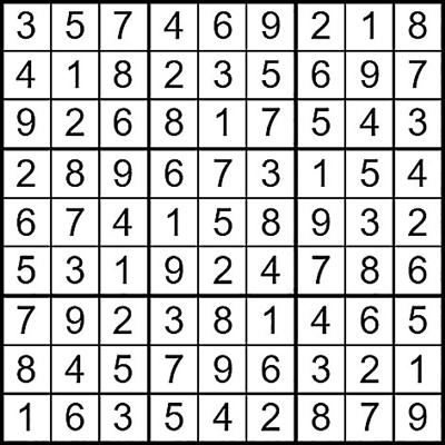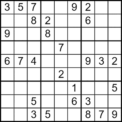 在每个小格子里填入1-9中的数字,使得每个数字在“九宫阵”的每行、每列、每个宫格中均只出现一次。(答案→)