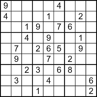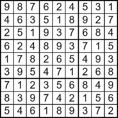在每个小格子里填入1-9中的数字,使得每个数字在“九宫阵”的每行、每列、每个宫格中均只出现一次。(答案→)