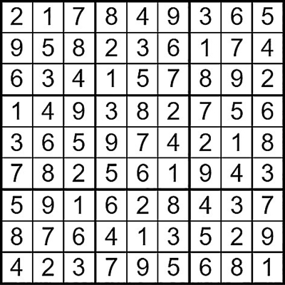在每个小格子里填入1-9中的数字,使得每个数字在“九宫阵”的每行、每列、每个宫格中均只出现一次。(答案→)