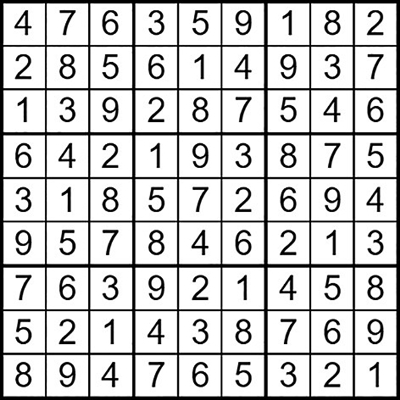在每个小格子里填入1-9中的数字,使得每个数字在“九宫阵”的每行、每列、每个宫格中均只出现一次。(答案→)