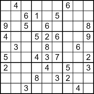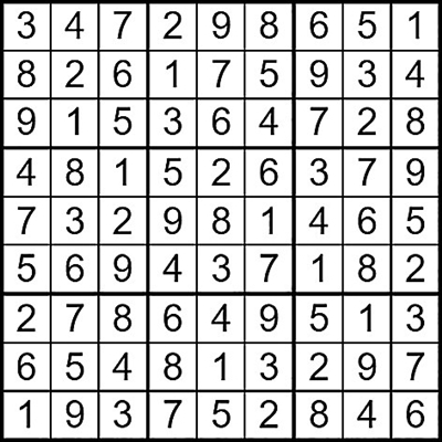 在每个小格子里填入1-9中的数字,使得每个数字在“九宫阵”的每行、每列、每个宫格中均只出现一次。(答案→)