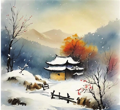 降雪给人们带来寒冷,但降雪让天地间呈现纯净素雅之美以及给人们带来悠闲和安逸的空灵感,很多诗人描写寒冷的诗句里洋溢着温馨和愉悦。唐·戴叔伦《小雪》:“花雪随风不厌看,更多还肯失林峦。愁人正在书窗下,一片飞来一片寒。”随风飞舞的雪花百看不厌,像素蝶般消失在山林之中。此时,诗人正在窗前读书,一片一片的雪花扑窗而来。读之,有一种优雅舒适之美。