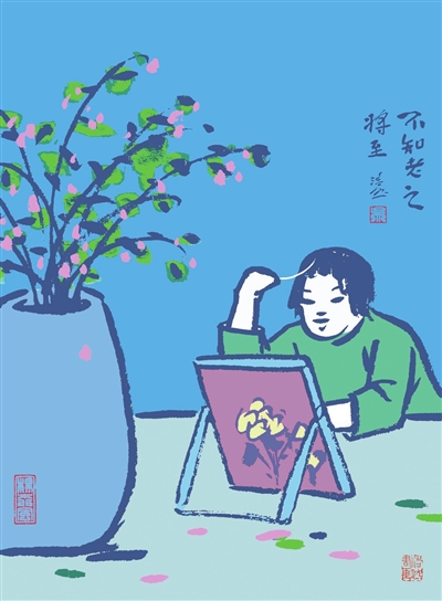 【画语】早晨洗漱,发觉鬓边又添白发。光阴荏苒,岁月无情,不知不觉中我们慢慢变老。我们唯一能做的就是在生活中寻找乐趣,在工作中淡忘岁月。