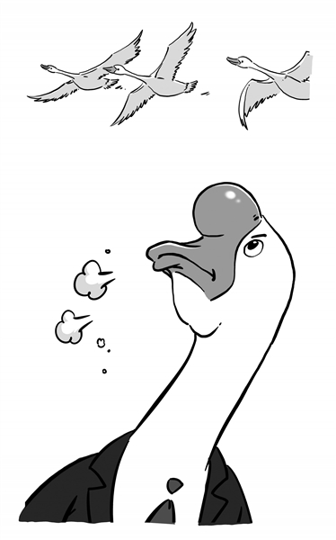 奔跑,但无论如何努力,始终无法翱翔于蓝天。望着南飞的天鹅群,大鹅沮丧地叹道:“没这本事,混圈子又有何用?”