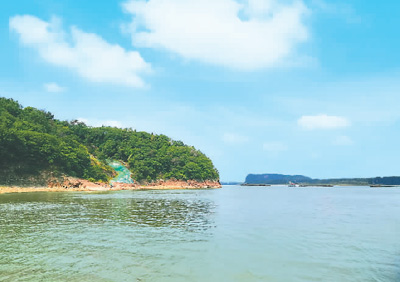 沿石级东下,一径芬芳沾衣落身。横江的浪花四季常开不败。外滩上,浸水沙潮暗,干燥沙细白,同行的云常带着学生来这踏青,孩子们在白沙上用手写字画画。手抓一把白沙,光滑细细有暖意,细沙不经意从指缝中滑落,这就叫沙漏吗,这就是时间吗?不觉间,日近正午,阳光有点辣,沙白渚清,江水闪亮。