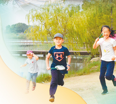 小朋友在河边玩耍。 |