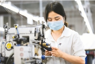 疫情发生以来,贵州省黔东南苗族侗族自治州锦屏县金融机构对辖区内企业加大资金投放力度,降低企业融资成本,激活企业活力。目前,锦屏县累计向辖区内企业发放贷款1.5亿余元。贵州飘雅服饰有限公司获得流动资金贷款,用于扩大产能需要。图为该公司工人在生产车间工作。 |