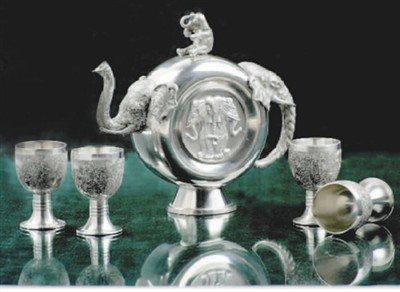 赖庆国斑锡作品九象奇妙酒具 |