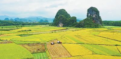 眼下,江西省吉安市峡江县早稻收获已近尾声。今年,该县克服洪涝灾害等不利影响,加强田间管理和灾后抢收,确保26万亩早稻颗粒归仓。图为村民在收割早稻。 |