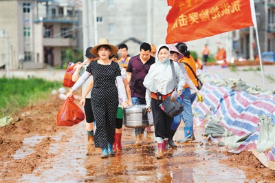 七旬摆渡人 王启干,今年70岁,安徽省安庆市海口镇培文村人,从1979年开始,在当地的西江上摆渡,2017年因年纪大而“退休”。 今年受强降雨影响,西江水位暴涨,淹没了通往培文村的道路,转移村民、抢险救灾等都因无法通行而成了难题,村干部紧急联系王启干,他毫不犹豫地答应,重启摆渡船。 经过连夜检查和调试,王启干驾着已停摆3年的船“重出江湖”,在儿子和儿媳共同帮助下,从7月11日开始,每天往返于西江两岸,帮忙转移群众、运送物资、接送参与抢险救灾的解放军官兵。 图为7月20日,王启干驾船行驶在西江上。 新华社记者 周 牧摄 |