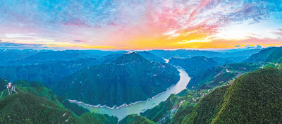 重庆巫峡现绚丽夕阳。 |