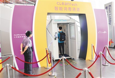 香港亚洲国际博览馆的智能消毒通道。 |