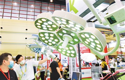 8月3日,为期3天的中原医疗器械展览会在河南郑州举行,来自全国各地的1000多家医疗器械参展商到会参展。图为8月4日,观众在中原医疗器械展览会上参观。