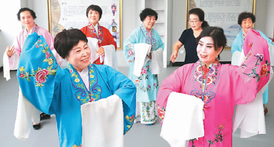 近年来,山东省东营市东营区通过开设种类丰富的课程,推动形成老有所养、老有所依、老有所乐、老有所为的社会文明新风尚。图为8月3日,当地文体活动中心老年大学课堂上,老年学员在排练戏曲节目。