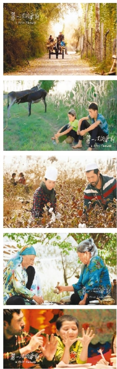 广袤无垠的塔克拉玛干沙漠,金黄的胡杨林,闪闪发光的湖水,绿树掩映下缓缓走来的羊群,还有过古尔邦节、摘棉花、跳维吾尔族民族舞……这些新疆元素浓郁的自然风貌和当地百姓的生活情境,通过《第一次的离别》的镜头,一一展现在世人眼前。
