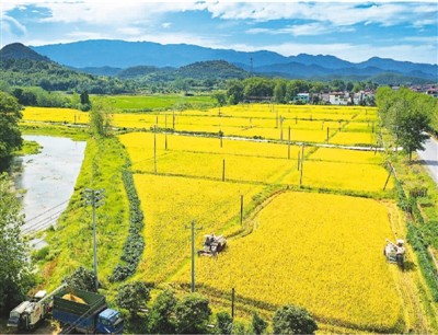 当前正值再生稻成熟季节,江西省宜春市上高县农民抓住晴好天气有利时机抢收再生稻,确保颗粒归仓。今年以来,当地把粮食生产作为首要任务,实施了一系列奖补政策,鼓励群众种植水稻。图为农民驾驶收割机在田间收割再生稻。
