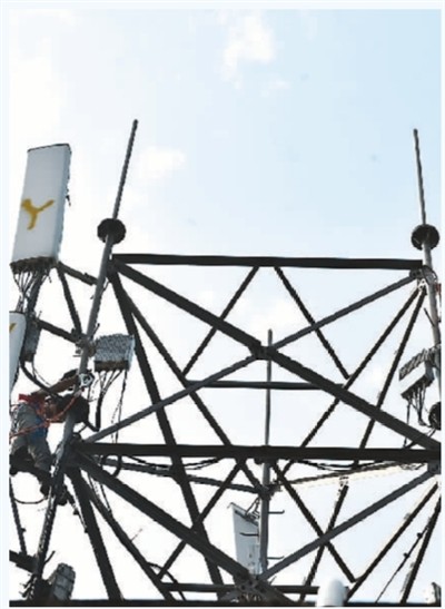 图为安徽移动铜陵分公司员工正在对托莱多西站进行5G设备更换。 洪 伟摄(人民图片)