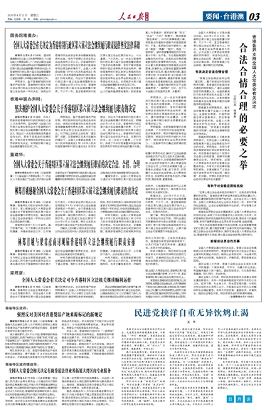 全国人大常委会有关决定为香港特别行政区第六届立法会继续履行职责提供坚实法律基础