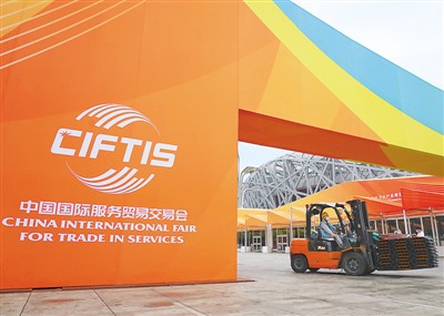 8月17日,2020年中国国际服务贸易交易会室外临时场馆及相关配套设施完成搭建。以北京奥林匹克公园为背景搭建室外场馆,是本届服贸会的一大亮点,8个室外专题展区沿北京奥林匹克公园景观大道布展。
