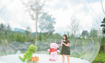 重庆市酉阳土家族苗族自治县板溪镇杉树湾村叠石花谷生态扶贫示范园景区里,游人在游玩。 |