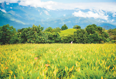 花莲赤柯山清晨的金针花海。 花莲县玉溪农会供图