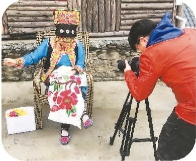 海外网“小康路上”新媒体采访团队在四川省阿坝藏族羌族自治州的黄秀英家拍摄羌绣。 |
