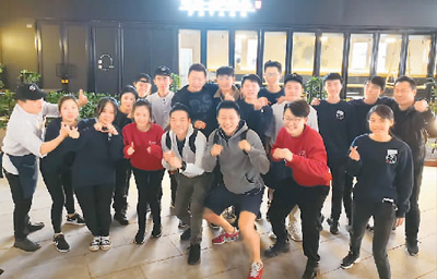 烧肉店创始人来成都巡店时与吴昱烨、杨心悦夫妇(红衣者)及其员工在一起。 |