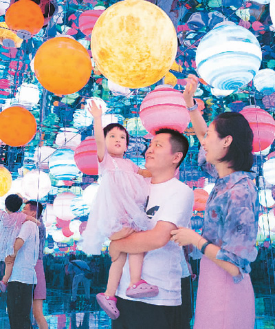 近日,江西省新余市仙女湖星空艺术馆面向公众开放。该馆以星空艺术体验、数字新媒体互动、奇妙装置体验等为主题,让游客感受科技奇趣。图为市民在星空艺术馆体验“镜屋”乐趣。