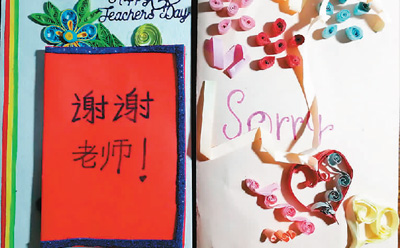 我更将在教师节那天收到的贺卡放在触手可及的地方,只为时刻提醒自己快速完成从学生到教师的身份转变,一定要成为一名认真负责的汉语教师。
