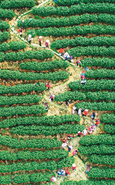 农忙时节,琴坛村村民在茶山采摘茶叶。 |