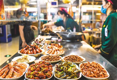 令人垂涎欲滴的麻辣烫、摆放得整整齐齐的馕、在木炭上吱吱作响的羊肉、在盆子里面冒着热气的面肺子……饮食文化在这里交流、碰撞。