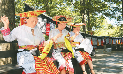 “扶持非遗工坊进行产品创意创新设计,推出符合时代特征、融入当代生活和具有知识产权的产品系列;扶持非遗工坊与各互联网电商平台、商贸平台建立合作对接机制,促进非遗产品进旅游景区和商业网点等,线上线下结合,延长产业链,开拓国内外市场。”张妹芝说。