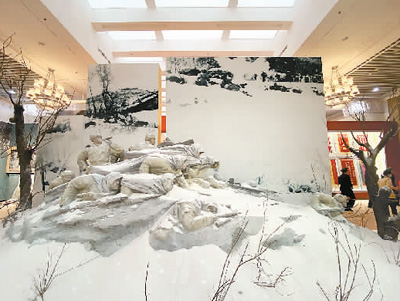 长津湖战役中最悲壮的牺牲,莫过于那些冻死在阵地上的官兵,他们永远保持着进攻的姿态。图为长津湖战役“冰雕连”雕塑。 |