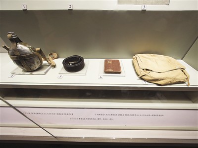 黄继光生前使用的水壶、腰带、日记本、挎包。 |