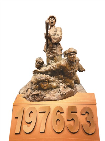 伫立在展厅一面背景墙前的雕塑,下面的一行数字“197653”让无数观众泪目——最终确认的抗美援朝烈士共计197653名。 |