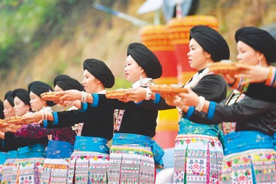11月1日,广西融水苗族自治县同练瑶族乡举办第二届农民丰收节暨盘王节,当地瑶族同胞身着节日盛装,和各民族同胞一道载歌载舞,共享丰收喜悦。
