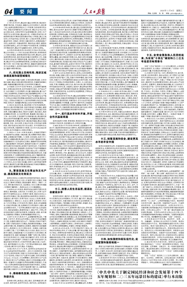 第十四个五年规划和二〇三五年远景目标的建议