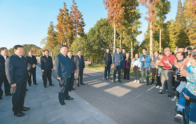 图为11月12日下午,习近平在南通市五山地区滨江片区考察时,同市民群众亲切交流。 |