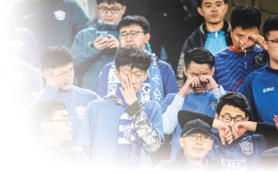 石家庄永昌队球迷在球队降级后落泪。 |