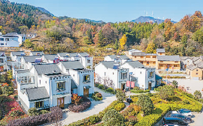 图二:安徽省六安市金寨县花石乡大湾村紧邻国家级自然保护区马鬃岭,拥有山场48298亩,森林覆盖率82.5%,生态旅游资源丰富,大湾村积极推行“茶旅”融合,大力发展乡村旅游,年接待游客30万人次。图为11月7日,大湾村幢幢小楼错落有致,周边秋色迷人,吸引各地游客慕名观光。 |