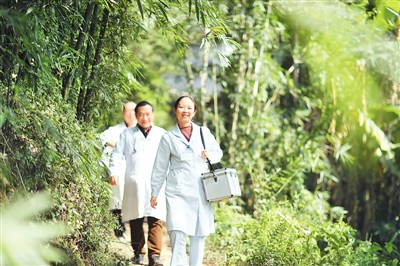 贵州省赤水市组建了110支“党员签约家庭医生服务队”,定期上门为建档立卡贫困户进行免费健康巡诊和用药指导。图为11月7日,在赤水市金华街道沙湾社区,签约家庭医生走村入户送医送药。 |
