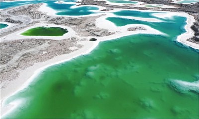 青海省大柴旦镇境内的翡翠湖色彩斑斓,景观独特。 |