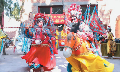 山东聊城临清市烟店镇日前举行“非遗”项目冯圈竹马系列展演活动。近年来,烟店镇将“非遗”项目引入到文化扶贫、文化扶智活动中来,既丰富群众业余生活,又为“非遗”传统文化传承助力。图为“非遗”传承人在进行冯圈竹马表演。