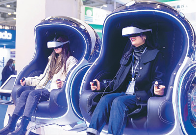 12月10日,由国务院台湾事务办公室、江苏省人民政府共同主办的第十九届中国苏州电子信息博览会在苏州开幕。本届电博会以“5G赋能,智创未来”为主题,设置电子智能制造、工业自动及机器人等五大展区,集中展示、探讨海峡两岸在5G、人工智能等电子信息领域最先进技术和最新成果。图为参观者在现场进行VR视觉360度极致体验。