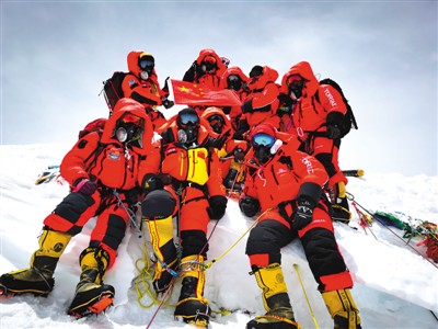 5月27日,2020珠峰高程测量登山队成功登顶世界第一高峰珠穆朗玛峰。图为登山队在峰顶合影留念。 |