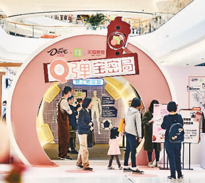 在上海万象城,奈雪的茶与德芙联名快闪店吸引消费者来打卡。 |