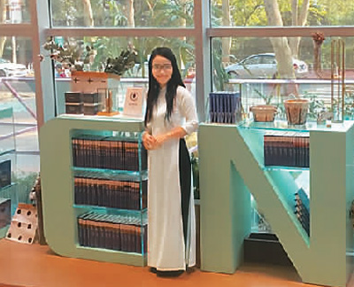 阮红玲在图书馆。 |